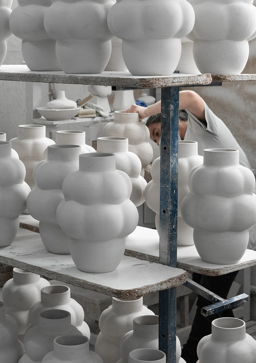 Each and every ceramic object in our collection is hand-molded in Portugal. Our vases and trays endure the touch of adept crafts folk who leverage their generational expertise to perfect each variation. Although durable, ceramic is also fragile and we thus urge you to handle each vase with care to ensure its longevity.