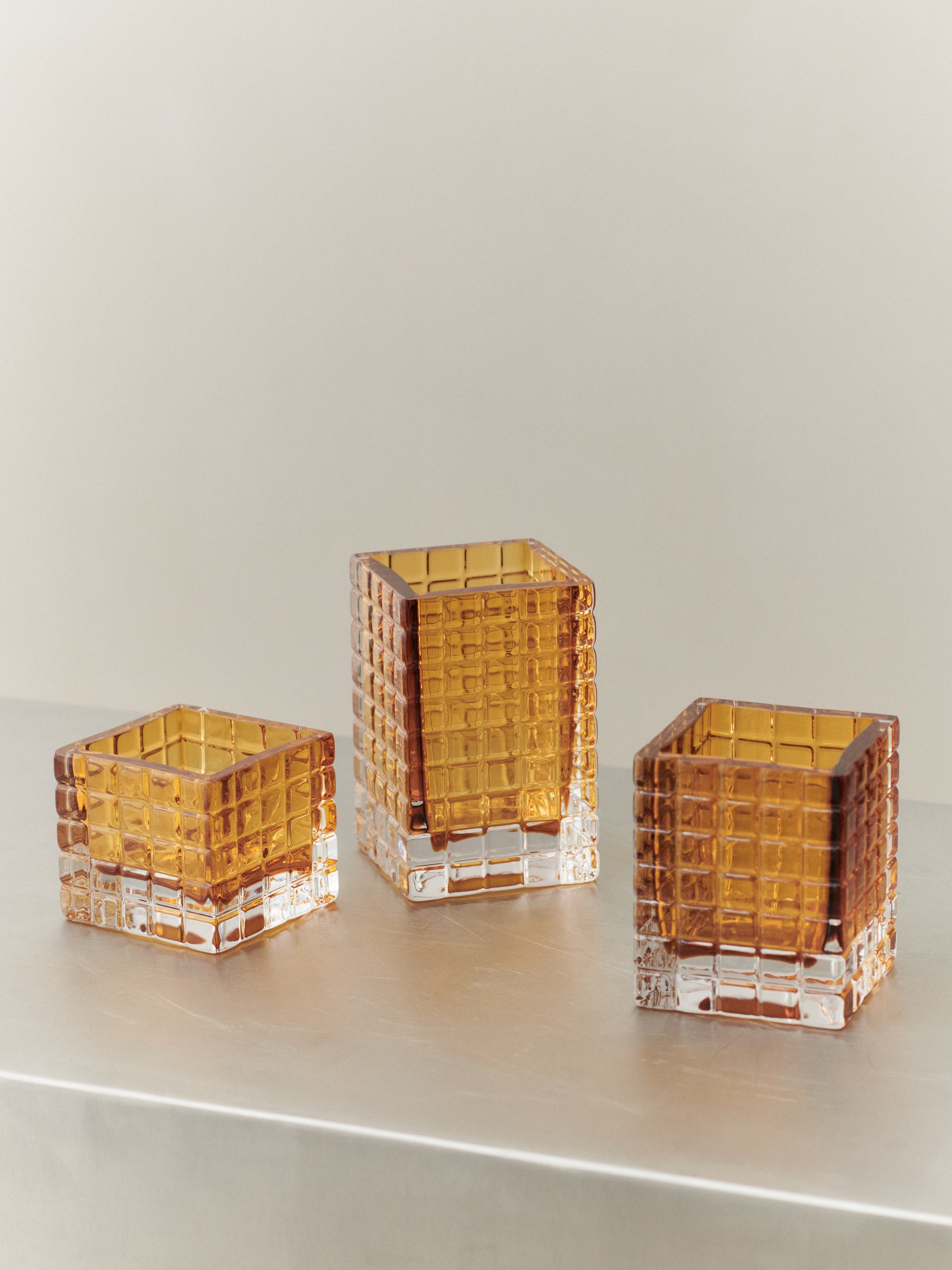 Mimic Fifth Avenue and combine the diverse tones and sizes to create a personal expression. This object commemorates the skillful glass-blowing technique, by which no article is enitrely identical to another.