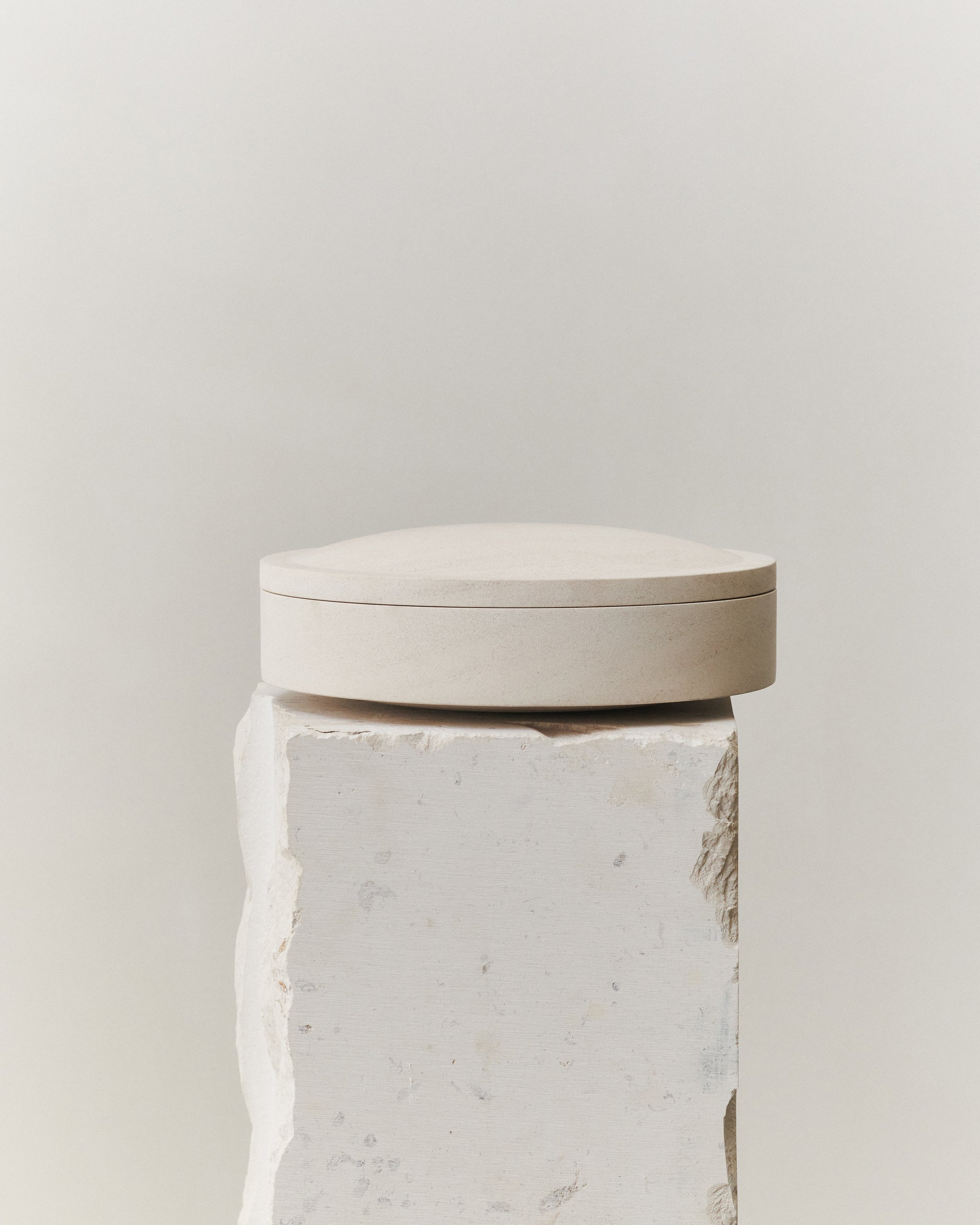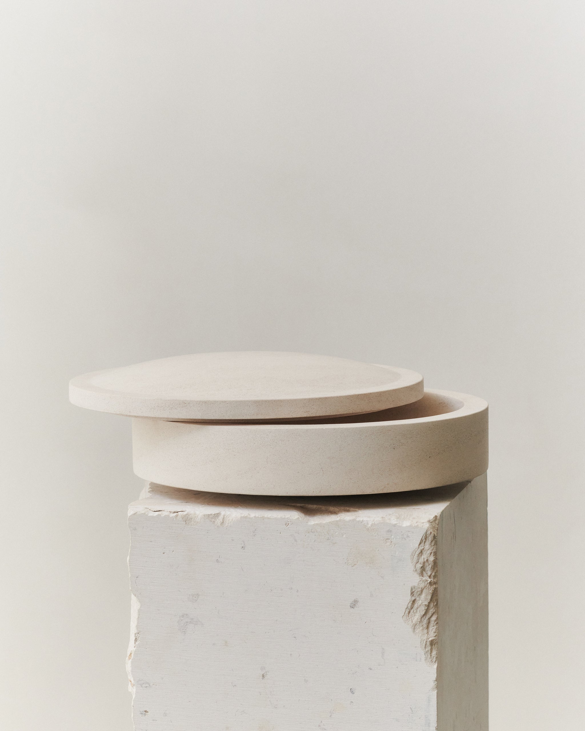 The Gallery Object series in stone from the LOUISE ROE collection includes diverse and size-varying jars, trays, bowls, and cake displays, available in two colorways: Black Basalt and Limestone.
