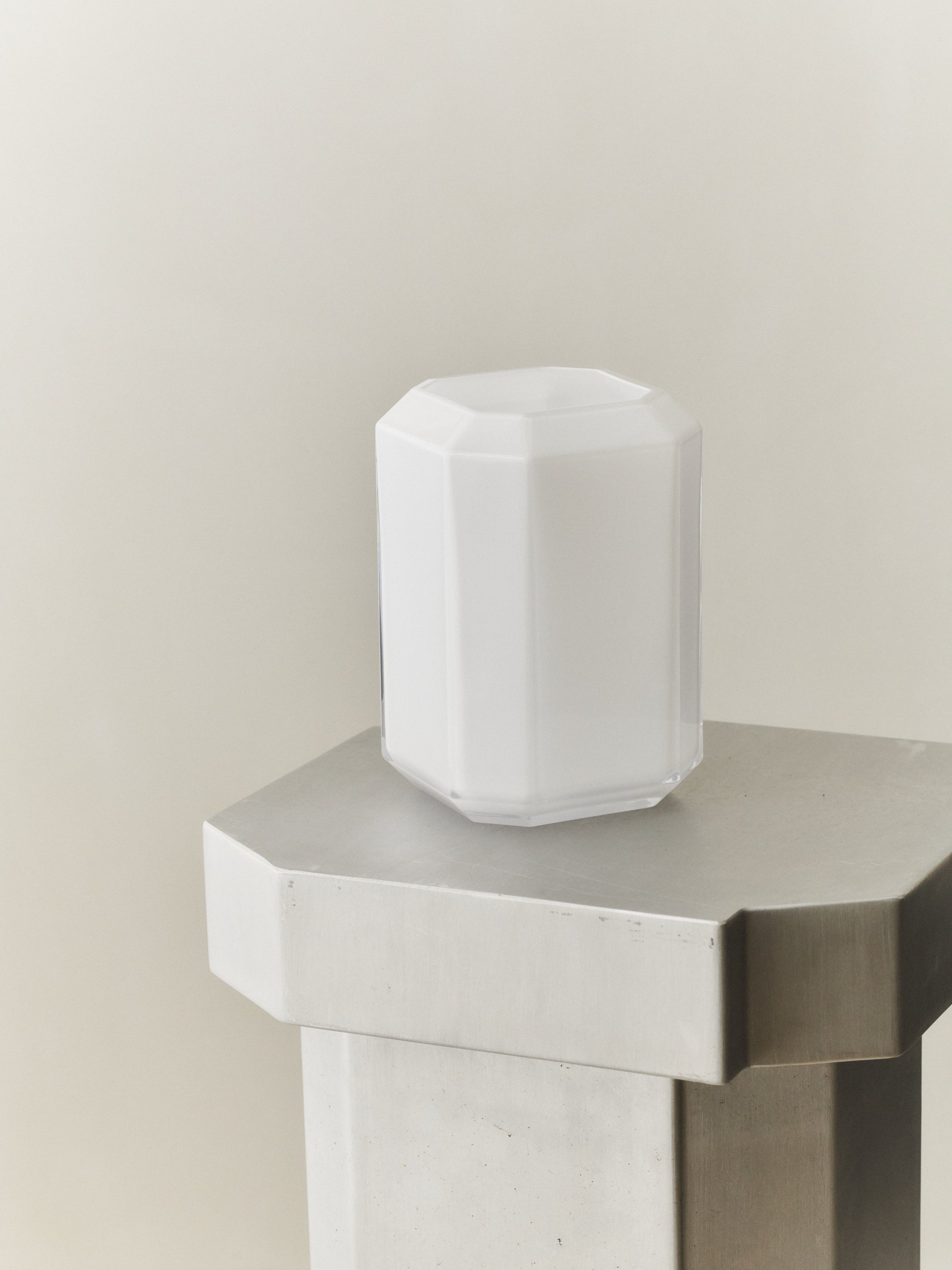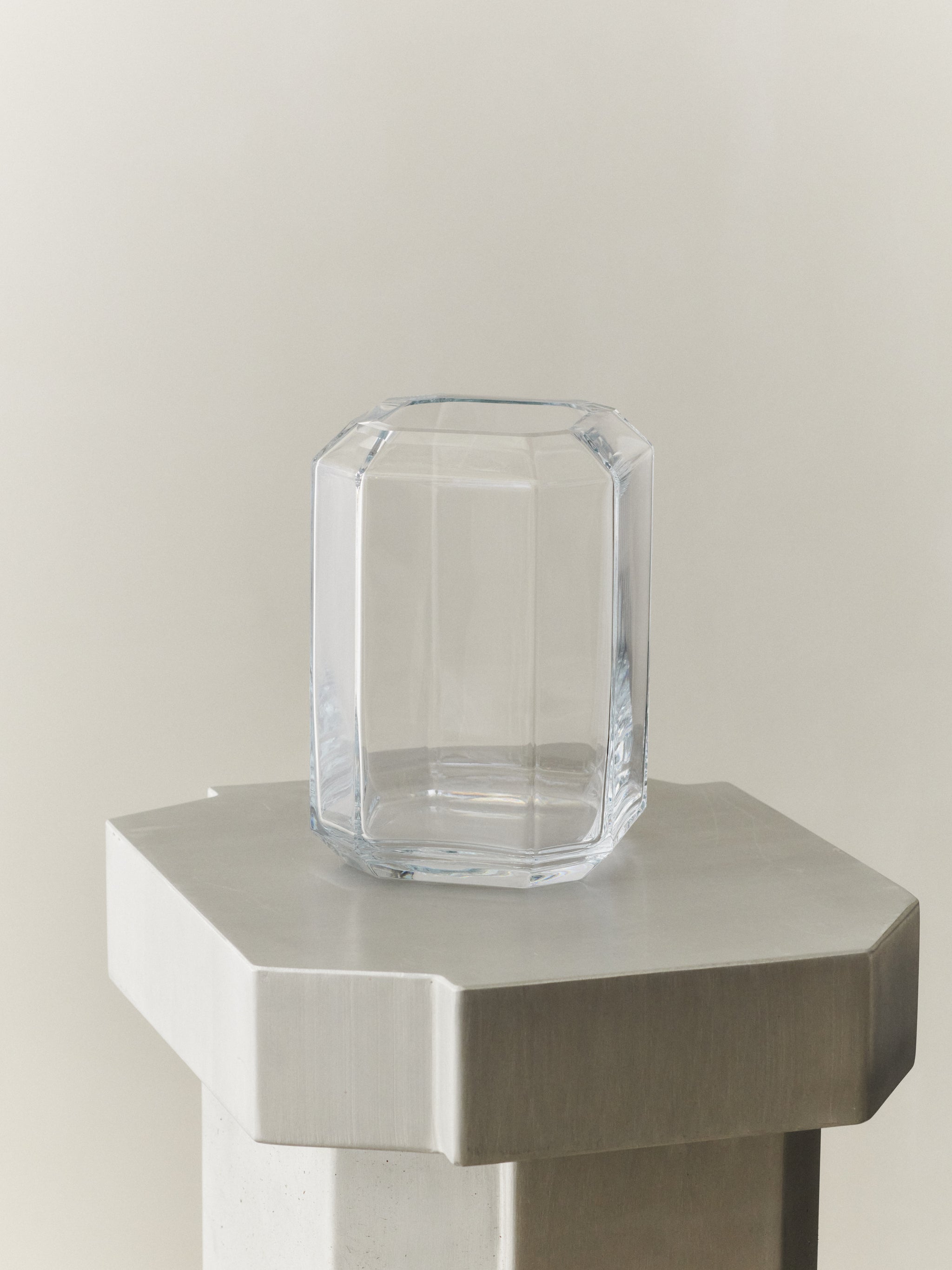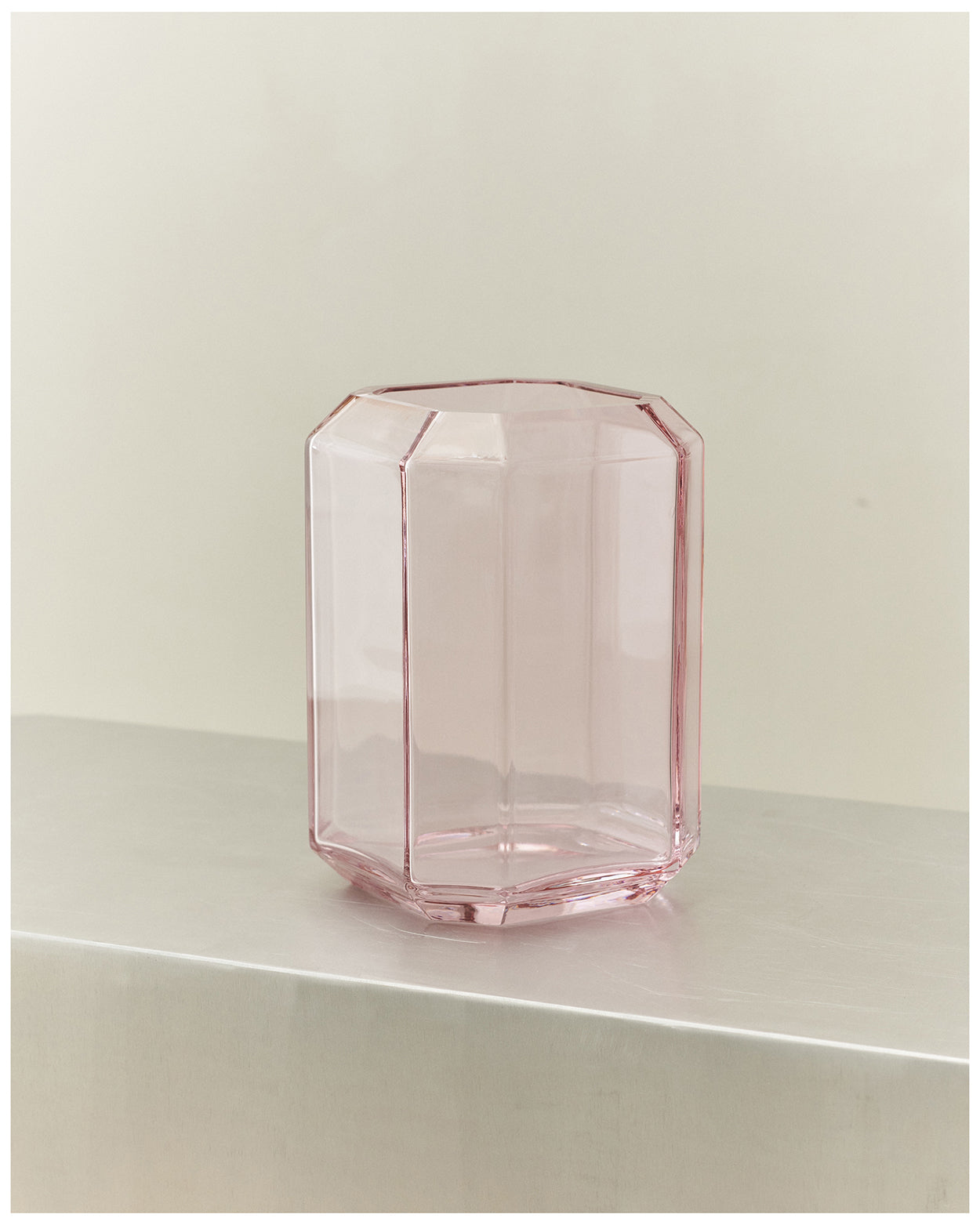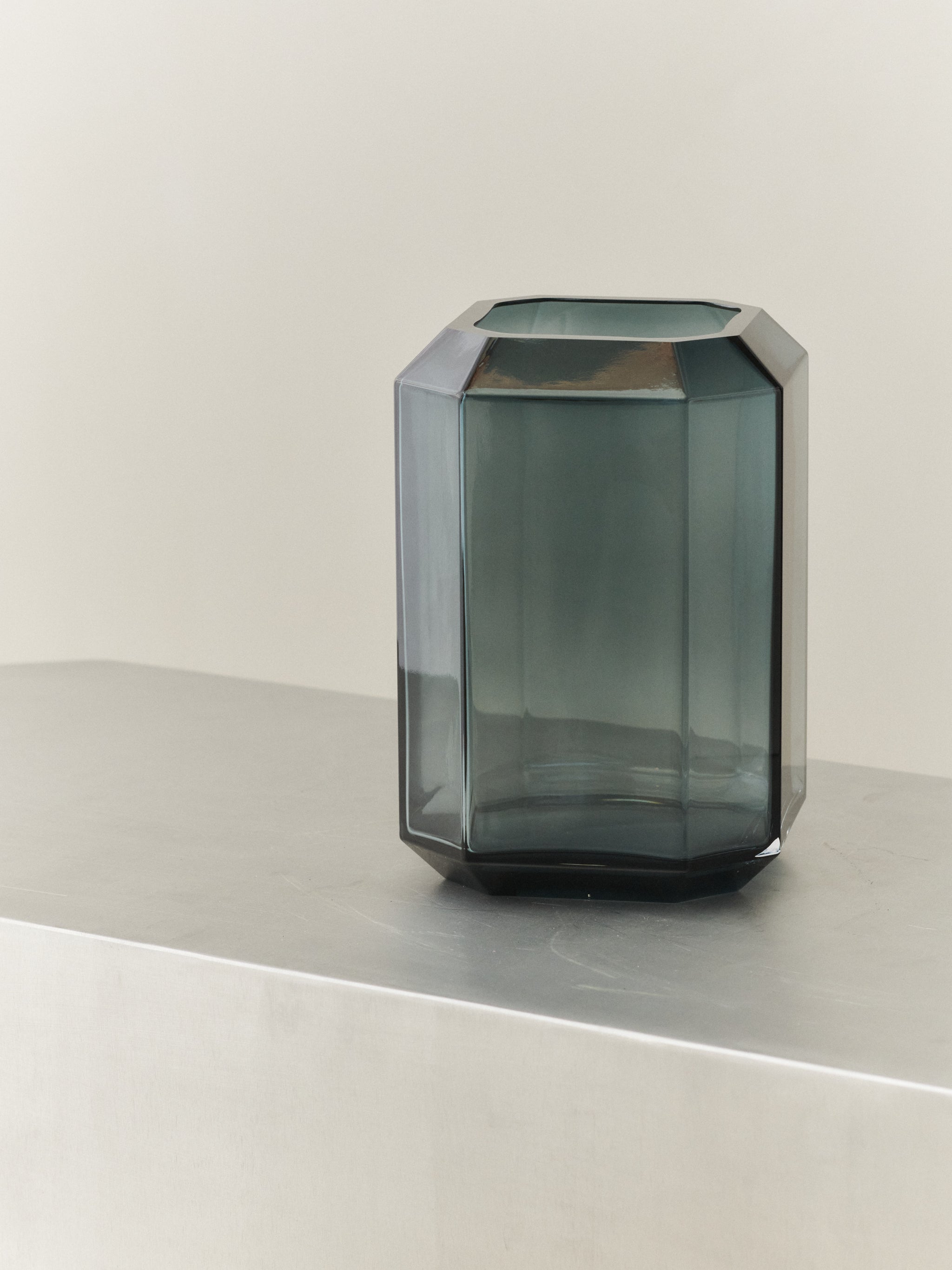 Visually resembling a gem, our Jewel Vase epitomizes valuing the precious things in life. With its soft sculptural traits, this object commemorates the skillful glass-blowing technique, by which no article is enitrely identical to another.