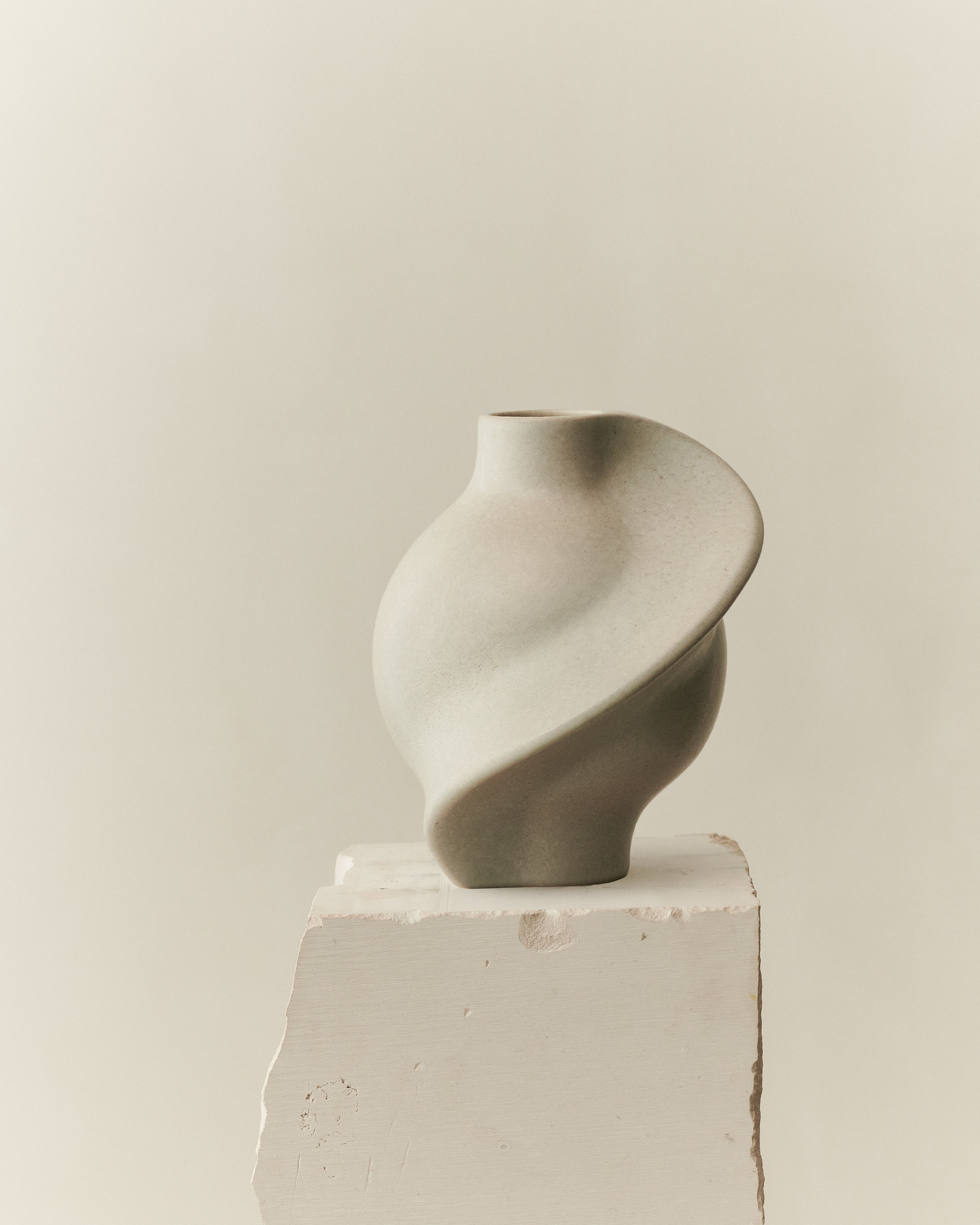 The Pirout Vase captivates with its organic lines and graceful form, making a striking statement whether standing alone or displaying a seasonal bloom. Its fluid, flowing silhouette evokes a sense of movement and elegance.