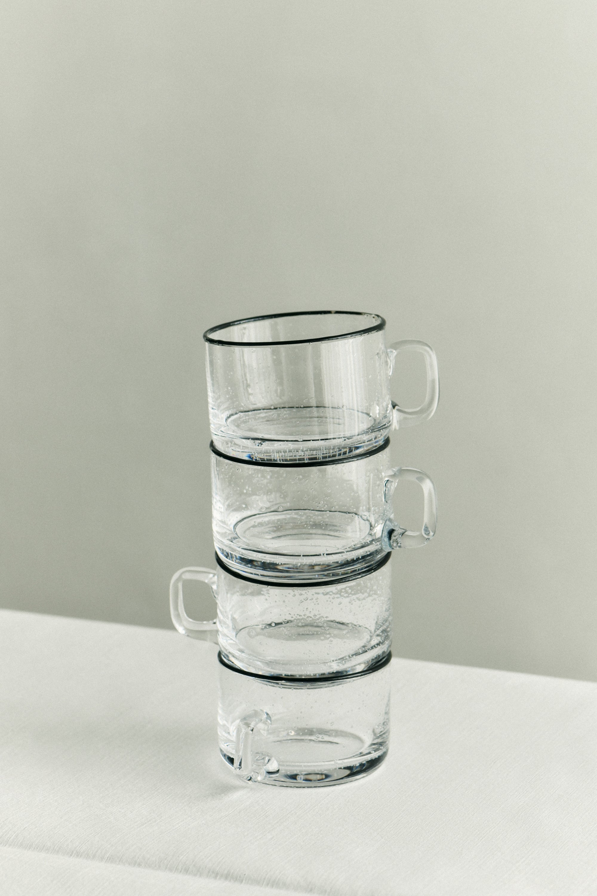 Characterized by their simplistic yet prominent black-rim detailing, Sophia’s Bubble Glass composition captures her take on the original array by LOUISE ROE. The assemblage commemorates the craftsmanship of glass-blowing, which endows each object an individual character and purposefully so.