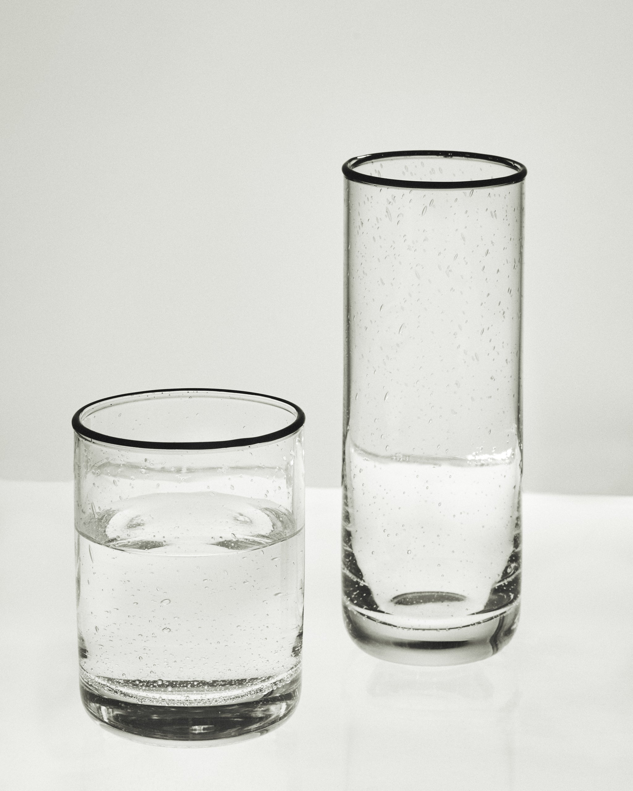 Elevating moments both grande and intimate, the tall and low bubble glasses elevate both a slow morning and a celebratory dinner. The slender stem and soft facade rests comfortably in one’s hand.