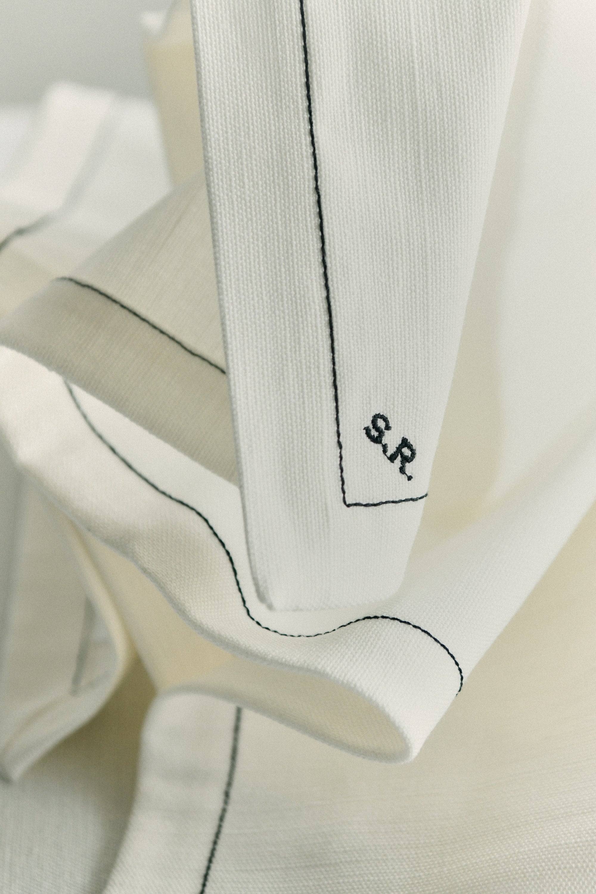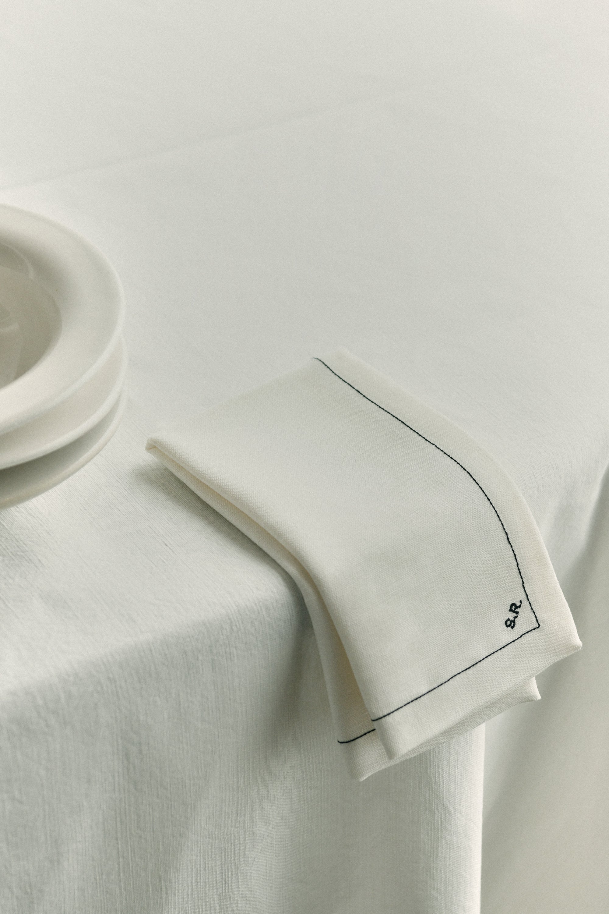 Each napkin is embroidered with a small S.R. logo positioned in the corner.