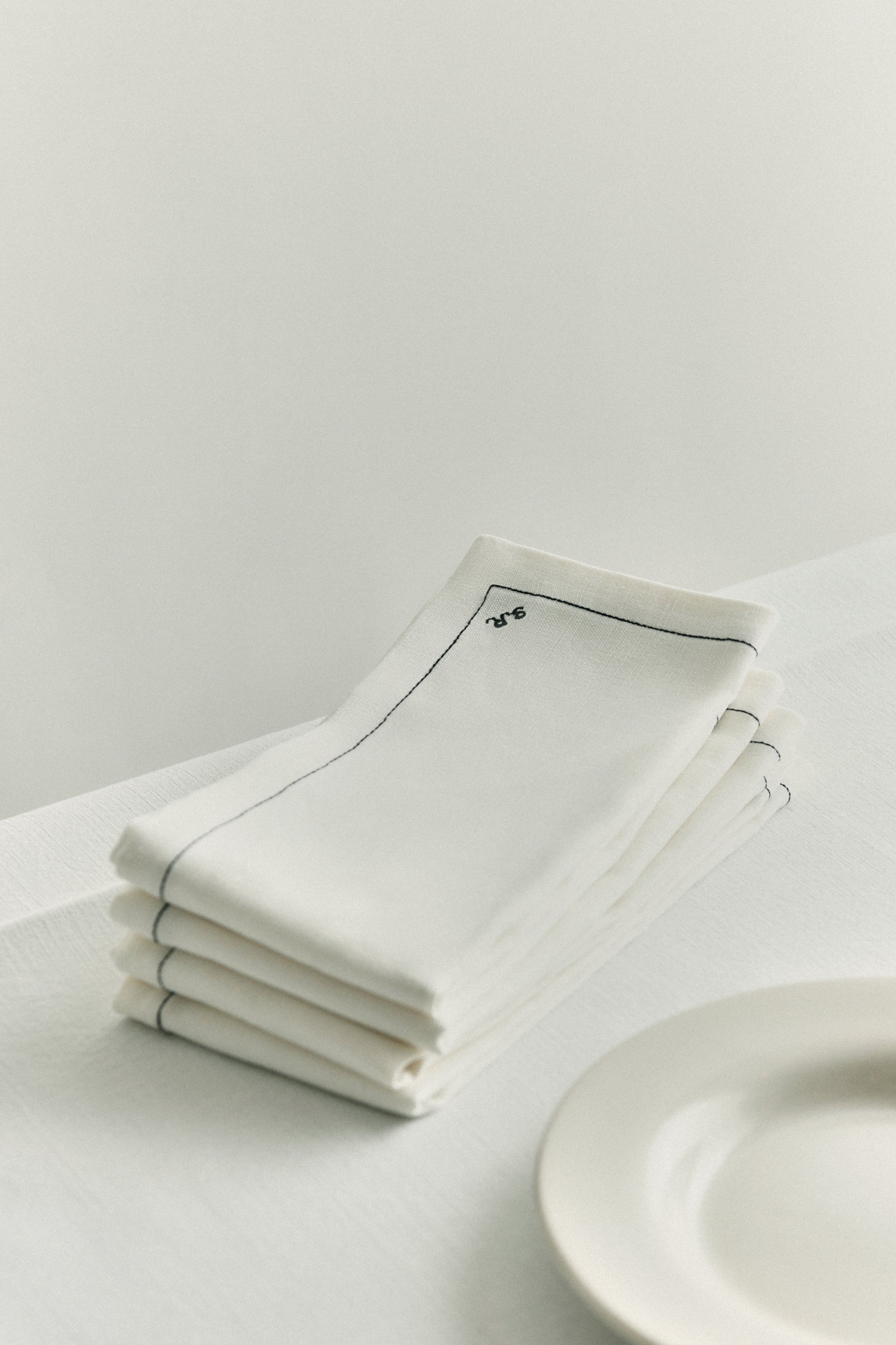 The S.R. napkins are available for purchase exclusively in bundles of four.