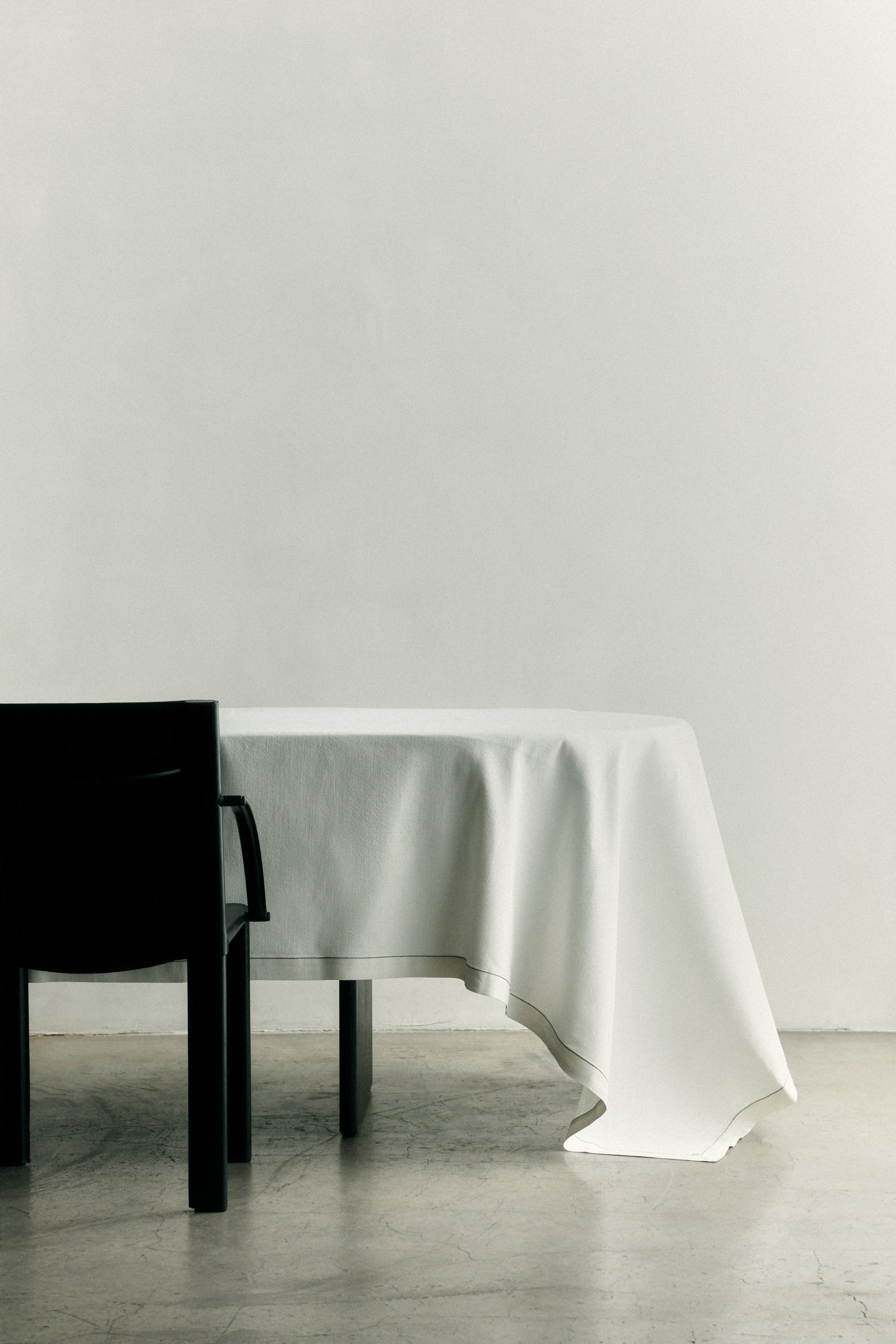 Characterized by its black embroidery, Sophia’s Table Cloth elegantly frames the table setting, and establishes visual coherency. Hand-woven from 60% cotton and 40% linen, the exclusive cloth’s quality can both be felt and seen.