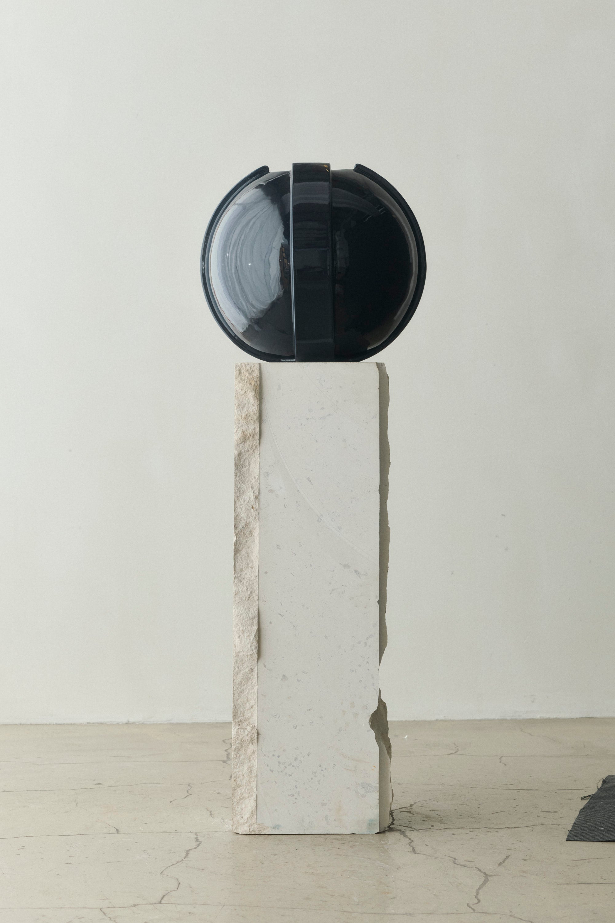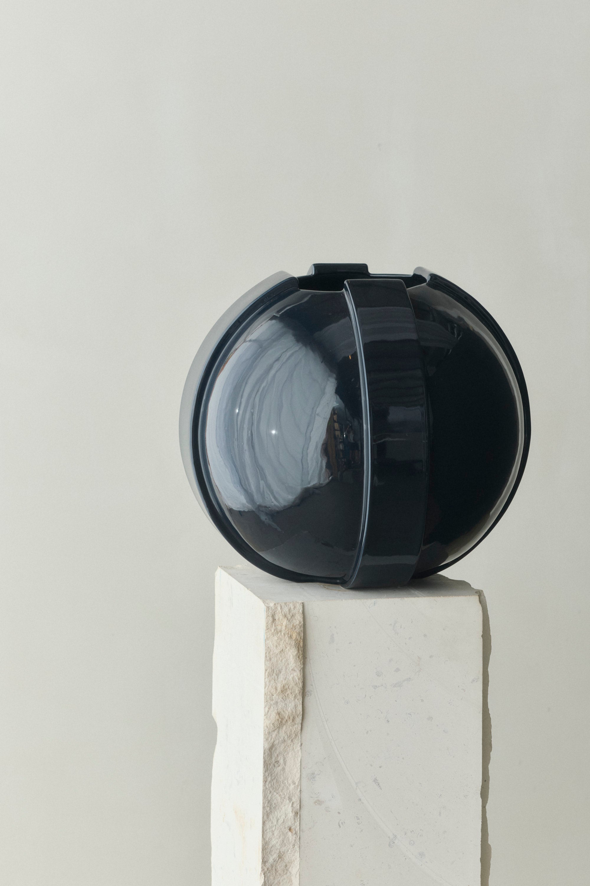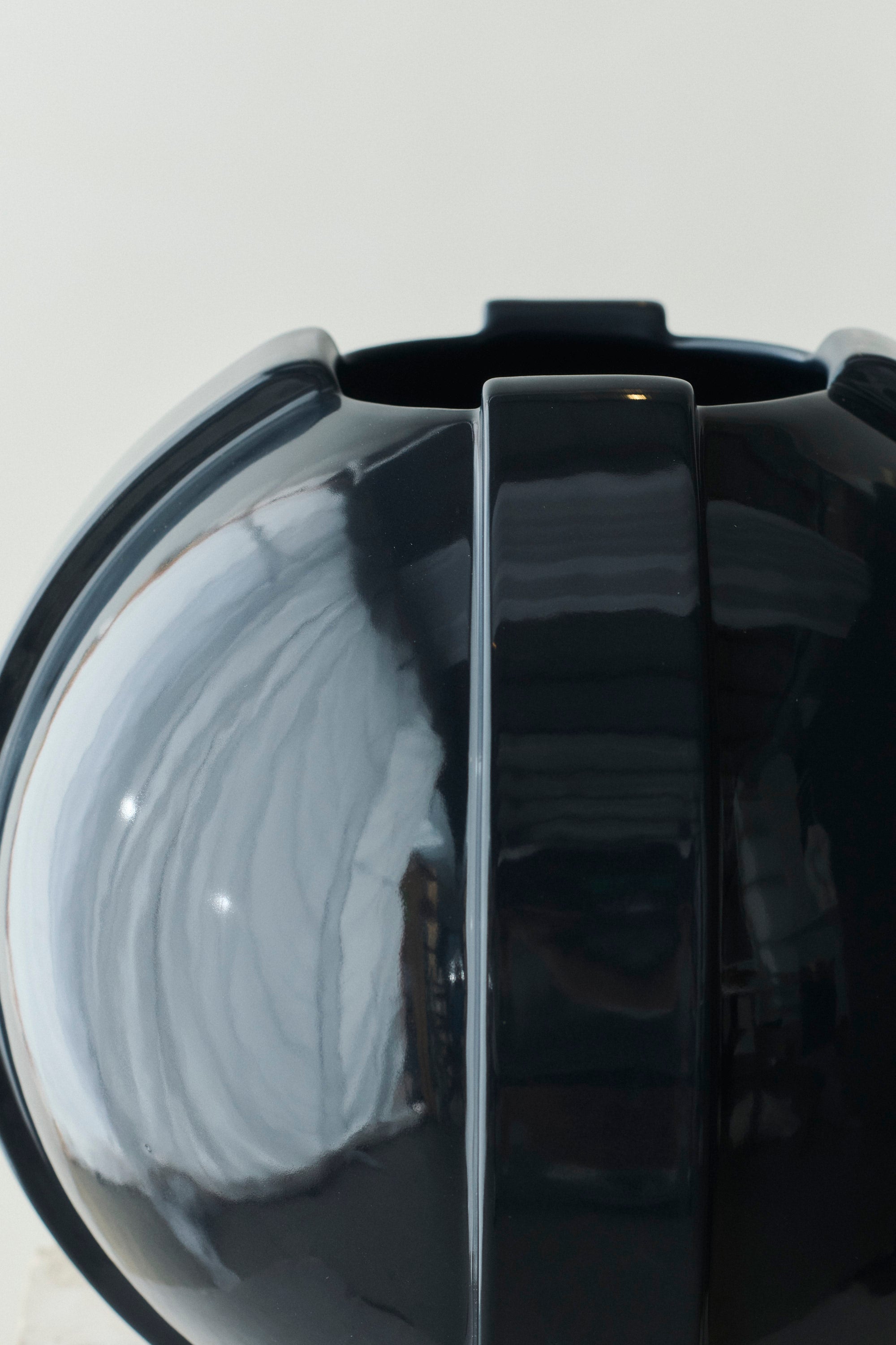 The VINCI Vase displays a round silhouette, accented by a belt-like band encircling its figure - a visual detail that metaphorically channels circular energy. Artisanally hand-molded in Portugal, it comes in two sizes. The larger impression is a grande sculpture, standing independently.