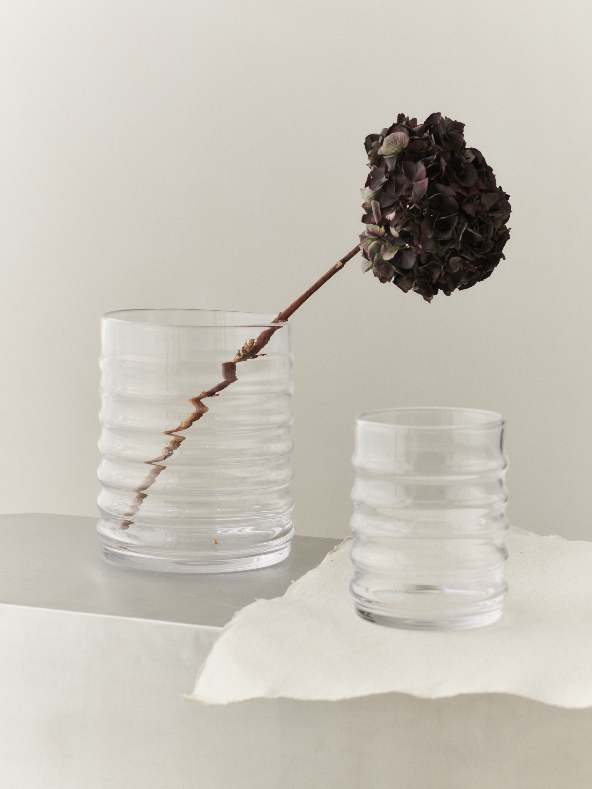 Our Willy Vase displays a blend of organic lines and benign curves. Elevating its setting of placement as solely a decorative ornament, this sculptural object also houses taller blossoms and personal gems.
